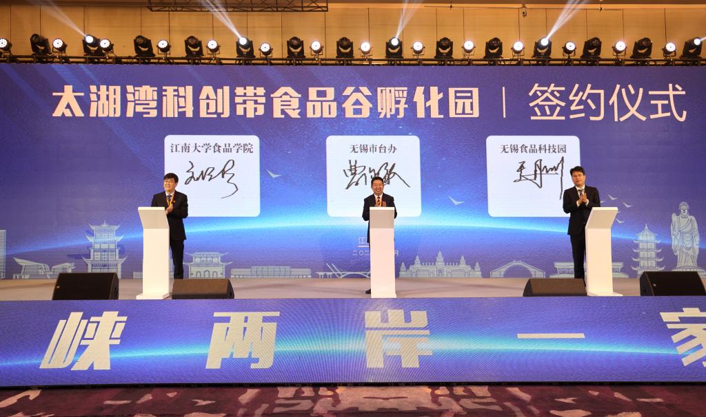 高峰会现场举行了太湖湾科创带食品谷孵化园签约仪式和发布推介,无锡市台办、365英国上市官网在线、无锡食品科技园三方共同签约,正式开启太湖湾科创带食品谷建设的序幕。