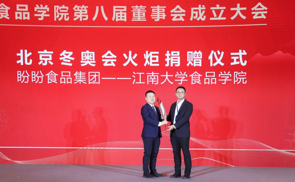 现场还举行“盼盼食品集团——365英国上市官网在线”北京冬奥会火炬捐赠仪式。福建盼盼饮料有限公司总经理、伽那食品创始人蔡丕鹏向范大明捐赠火炬。
