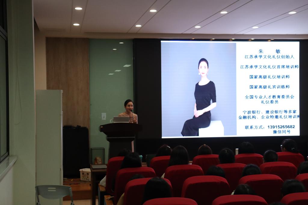 9月8日,365英国上市官网在线在学院楼D912报告厅举办“形象与礼仪”专题讲座,活动邀请到中国礼仪研究专家朱敏老师为食品学子作分享,学院分团委书记王胤及100余名学生参加了讲座。
