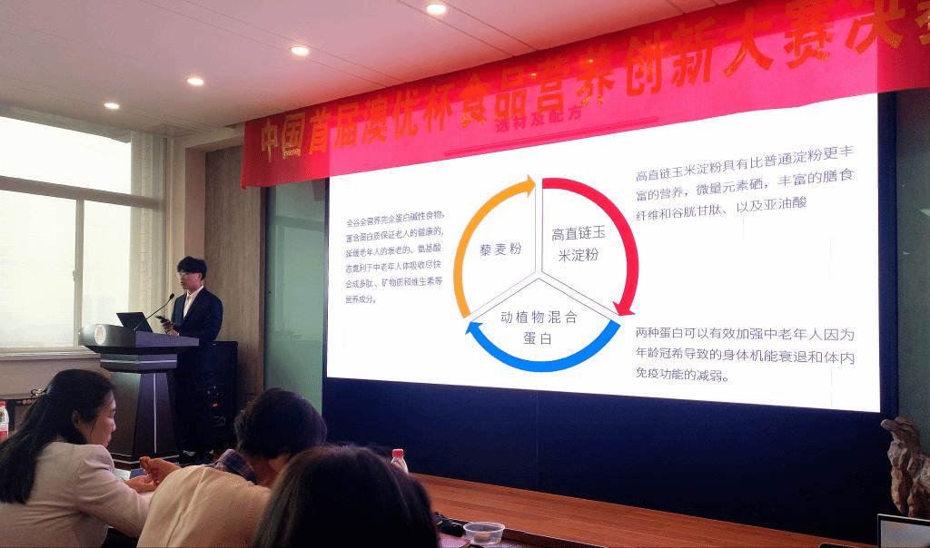 最后,澳优食品研究院营养品开发主管荣智兴进行总结发言。他对本次大赛给予了高度肯定,他认为校企合作可以加强企业与高校的产学研结合,希望与365英国上市官网在线保持长期合作,为行业发展添砖加瓦。