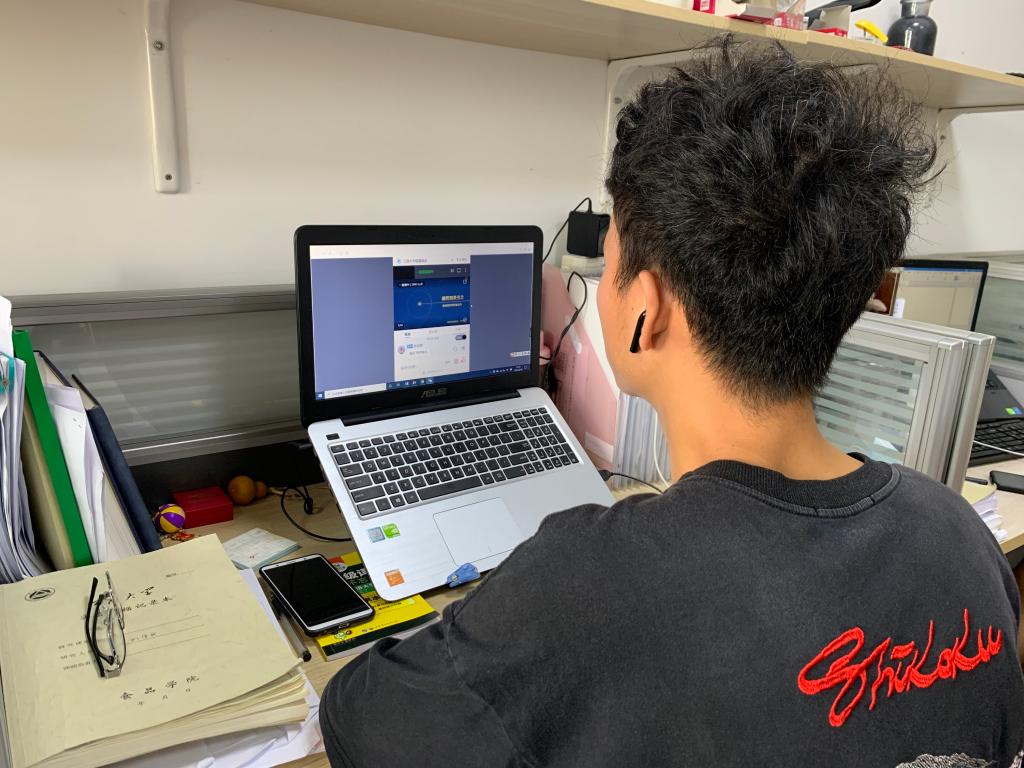 学生在实验室观看讲座