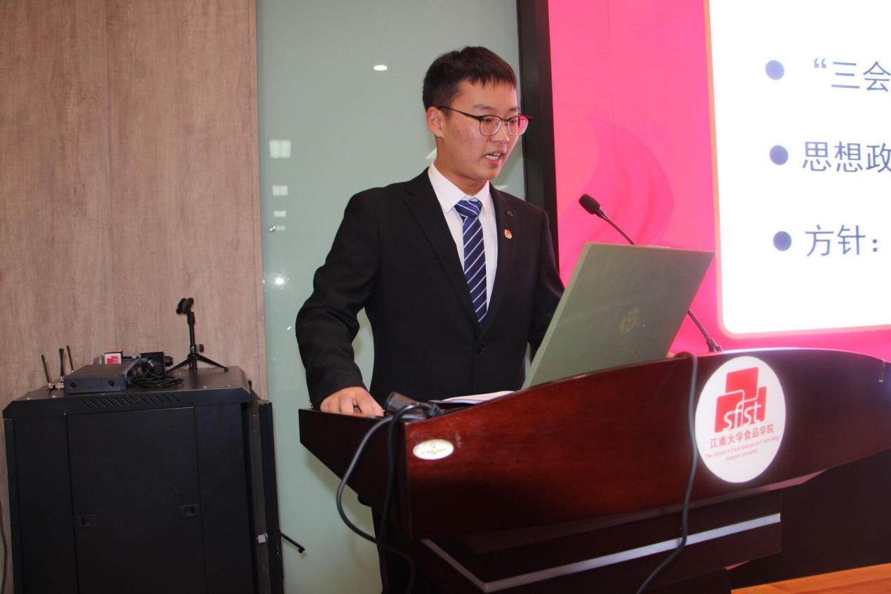 紧接着,食科1905班团支书白德华分享了新闻稿撰写的经验和技巧,并强调了宣传材料上交时需要遵守的格式要求,并希望借此帮助新生团支部提升其新闻稿质量。