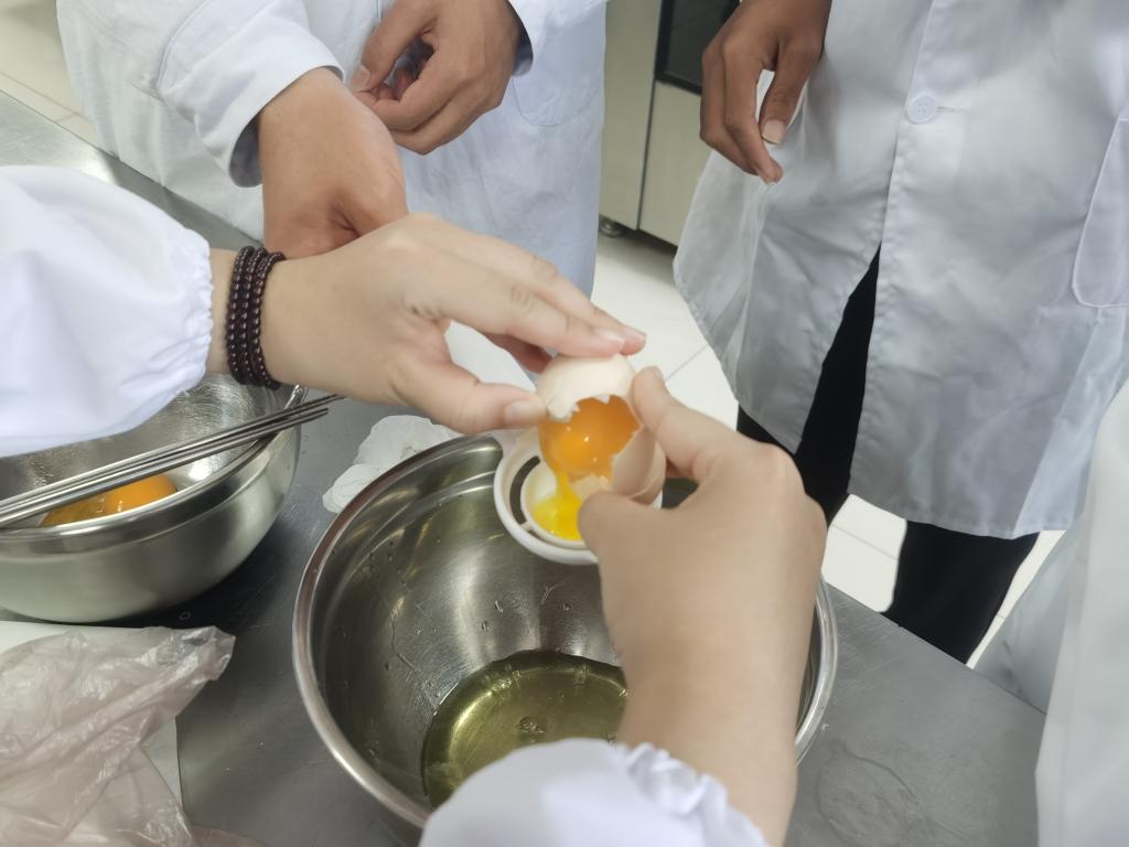 为了此次活动能够顺利进行,调味品俱乐部提前一天进行了产品试做,并提前半小时到达现场进行设备清洗及食材准备。调味品俱乐部选择了简单易学的松饼舒芙蕾进行现场指导教学。在俱乐部同学的指导下,新生按照操作步骤动手尝试,在团队合作中成功做出香甜松软的松饼舒芙蕾。新同学们兴奋地试吃自己的产品,并合影留念。