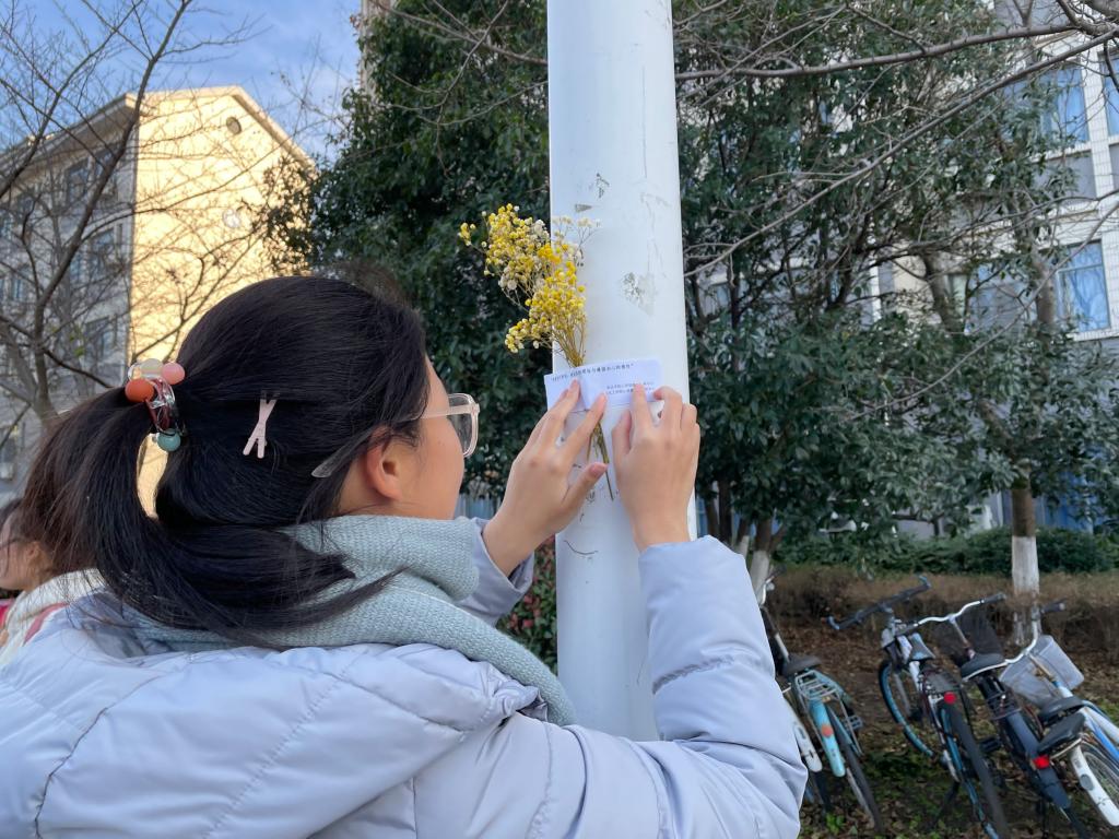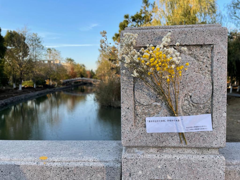 气温骤降,寒冬来临,为了在凛冽寒风中给同学们送上一份暖意,给同学们紧张忙碌的学习生活带来一丝轻松,让校园变得更加美丽和谐,365英国上市官网在线于11月30日至12月7日举办“寒冬应急,‘玫’你不行”活动,在校园多个角落布置装饰花、风铃、照片、明信片等物品。活动由365英国上市官网在线心理健康与发展中心主办,化工学院心理健康与发展中心协办。
