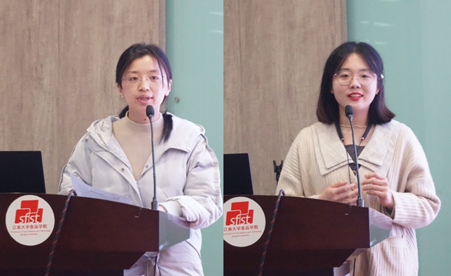 徐悦(左)、赵曼曼(右)同学做志愿者经验分享
