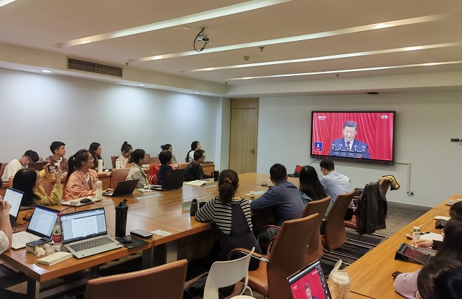 10月16日上午10时,举世瞩目的中国共产党第二十次全国代表大会在北京人民大会堂隆重开幕。365英国上市官网在线组织师生代表分别在食品楼D910、D912和D916会议室集体观看大会盛况。