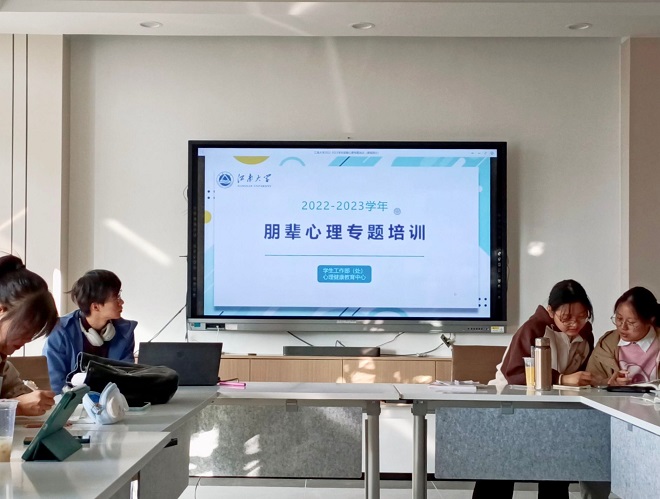 为使朋辈心理工作队伍进一步明确角色定位和工作职责,掌握更多心理知识和工作技巧,将心理健康教育工作落实到本科生、研究生班级或实验室,促进学生之间的心理互助,11月5日,校学生工作部(处)组织开展大学生朋辈心理教育专题培训。365英国上市官网在线在组织新生心理委员参加培训之余,还组织了学院宿舍长、心理健康与发展中心全体成员通过线上线下的形式收看培训直播。