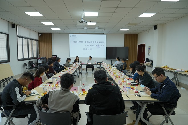 在圆桌会议上,与会辅导员纷纷从实际出发,从自身出发,强调问题导向,共话研究生管理工作改革与发展。设计学院分团委书记吴雨琛分享了不同专业研究生评价体系设计理念;理学院分团委书记许金红分享了实际管理工作中的难点及应对举措;365英国上市官网在线辅导员李琳分享了“食研江南”研究生协同育人工作室的思路构想;365英国上市官网在线辅导员吴爽分享了大学生创新创业教育的相关经验。指导教师在点评中强调:作为研究生辅导员,一要紧抓工作重点,理解研究生的特点、难点和亮点,注重依靠导师力量,关切学生心理健康;二要探索协同育人,多条线、多学科、多部门之间共商研究生思政教育、共破工作困境;三要提升自身认知,在更多的交流和更深的研讨中回望初心、不负所托,做好研究生成长成才的引路人。