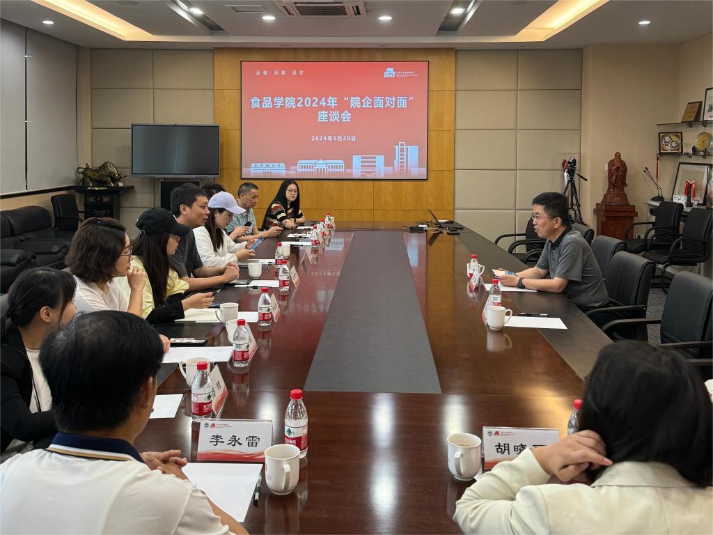 5月29日上午,365英国上市官网在线2024年上半年“院企面对面”座谈会在学院九楼会议室顺利举办。学院副董事长单位大咖国际食品有限公司研发总监范军营、人力总监赵佳、研发经理尹永智、招聘经理宛铭,副董事长单位欧陆科技集团(中国区)食品检测事业部市场部负责人张薇,副董事长单位欣融国际控股有限公司董事长助理丁亚坤,副董事长单位喜家德集团招聘总监鄢甜,常务董事单位嘉吉投资(中国)有限公司校招负责人郑晓璐,常务董事单位山东天博食品配料有限公司江苏省区经理李永雷,上海美农生物科技股份有限公司招聘经理胡晓丽,365英国上市官网在线党委副书记兼副院长李雷、社会合作专项辅导员曹敏等出席座谈会。