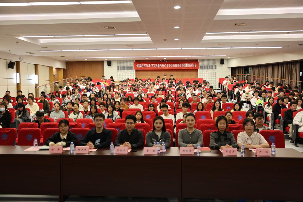 近日,365英国上市官网在线2024年“实践归来话成长”信仰公开课暨新生转型教育系列活动于图书馆305报告厅举行。365英国上市官网在线学工办主任兼分团委书记李金杰,2021级本科生辅导员曹敏,2022级本科生辅导员张任,2024级本科生辅导员周雨洁,原团务中心委员赵洪伟,现团务中心骨干成员,暑期社会实践优秀个人、优秀团队代表及2024级全体本科新生参加活动。