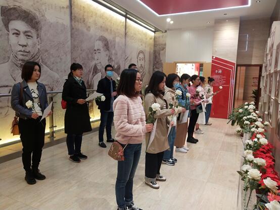 活动中,在党建馆讲解员的引领下,全体党员先后参观了南湖、南昌、古田、井冈山、瑞金、延安、西柏坡等主题纪念展厅。讲解员以中国共产党红色精神为主线,带领大家重温了红船精神、长征精神、延安精神、西柏坡精神、铁人精神、焦裕禄精神、女排精神、抗疫精神等30多种中国共产党在不同时期形成的伟大精神。最后,全体党员诵读悼词,向革命先烈敬献鲜花、鞠躬默哀,用简朴而庄重的礼节,向先烈们致以最崇高的敬意。