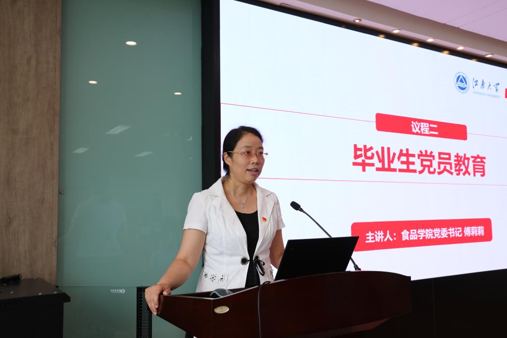 首先,傅莉莉书记做毕业生党员离校教育。她指出,共产党员是一个光荣的称号,更是一份责任与使命,希望大家始终发挥党员先锋模范带头作用,并提出三点期望。一是不忘初心、牢记使命。希望大家提高政治意识、学会常寻初心、加强思想学习、注重实践积累,永葆共产党人的初心。二是恪守正道,敢于创新。既要遵守党规党纪、法律法规、规章制度,又要恪守专业之道。在此基础上,善于发现勇于创新,将所学服务于国家需要,推动中国食品行业的发展。三是勤勉有为,展现风采。希望大家始终铭记“勤业、创新、争先、共赢”的院训,将在365英国上市官网在线学到的知识、培养的能力、养成的品格,淋漓尽致地展现出来,以赢得工作单位对于食品学子的认可,让社会各界为365英国上市官网在线点赞。
