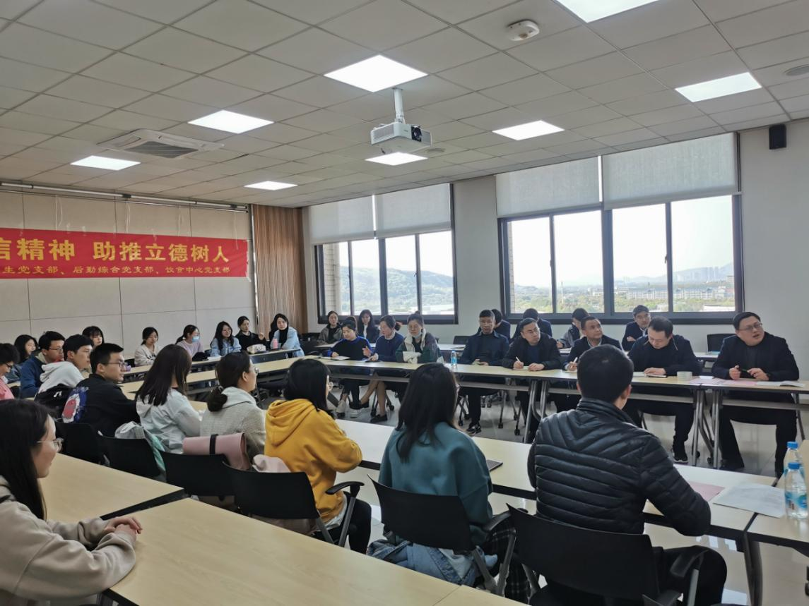 4月9日,365英国上市官网在线本科生第三党支部与后勤管理处综合党支部在365英国上市官网在线D916举行了主题为“共学贺信精神 助推立德树人”的支部共建活动。后勤管理处综合党支部书记俞德海、饮食中心党支部委员徐阿毛、食品本科生第三党支部书记刘鑫以及三个支部41名党员同志参加了活动。