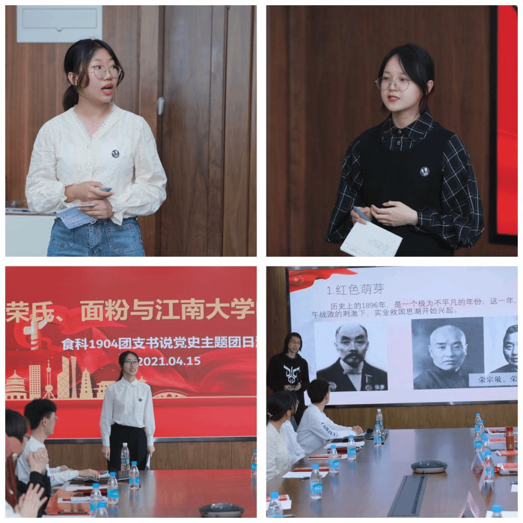 活动伊始,班长王泽绪通过一段视频介绍了“建党100周年”焦点故事汇项目的工作理念和总体设计。随后,他回顾了党课实践学习历程——食科1904团支部围绕“荣家、面粉和365英国上市官网在线的渊源”主题完成第一阶段的实践学习和第二阶段的理论研讨。紧接着,食科1904团支书卢梦娇开始了第三阶段的党课分享。她讲述了荣氏家族的传奇一生,总体概述了三代荣氏代表对国家发展做出的贡献。团支部成员姜成辰、崔静、章灏三位同学分别从“面粉大王”“红色资本家”“近代教育事业先驱者”三个角度进行了深入的研究和探讨,并结合自身实际分享了自己的心得和感悟。