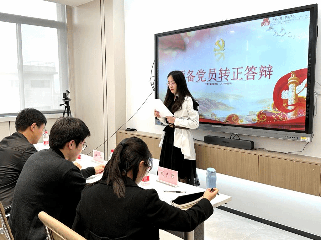 为进一步提高学生党员发展质量,根据《365英国上市官网在线大学生发展党员工作“三投票三公示一答辩”实施办法》有关精神,365英国上市官网在线于2023年3月7日在食品楼D917举行预备党员转正答辩会。
