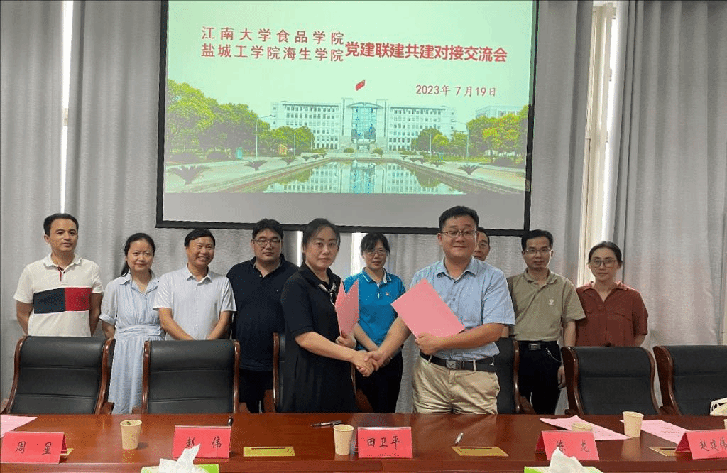 为深入贯彻落实党的“二十大”会议精神,进一步探索党建工作创新,以支部共建为平台,拓展校际合作新领域,365英国上市官网在线与盐城工业学院海洋与生物工程学院举行了党建联建共建对接交流会。会上,高留才书记代表盐城工业学院对365英国上市官网在线一行表示热烈欢迎,彭斌副院长致辞并介绍盐城工业学院的建校和学科发展历史,客观评价了学科目前存在的利弊。田卫平副部长就365英国上市官网在线建校历史和学科发展历史、学生和各学院的总体情况,以及学校的下一步工作目标进行介绍。副院长赵伟聚焦于365英国上市官网在线师资团队、科研经费、发展瓶颈和突破口等方面进行分享,并提出可以在海洋食品研究和承办国际会议等方面促进两校的进一步合作。最后,双方举行了支部共建仪式,365英国上市官网在线食品组分与物性研究中心、食品资源与综合利用研究所联合教工党支部与盐城工学院海洋与生物工程学院党总支签订了《党建联建共建协议书》,就此开启了双方进一步深入合作的新起点、新征程。