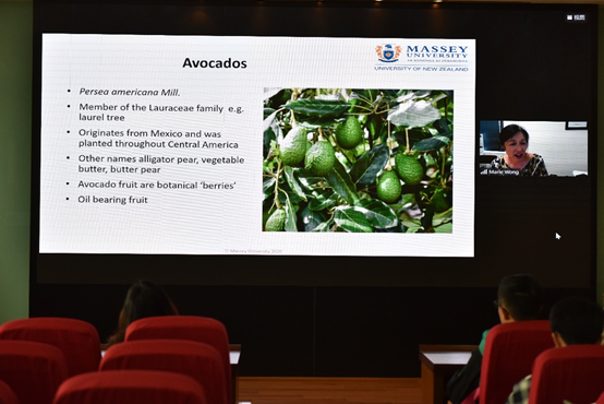 本次讲座的主题为“Avocado-Fruit to Oil (从鳄梨果到鳄梨油的演变) ”。讲座伊始,谢院长简单介绍了Marie Wong教授的工作经历、教学领域及研究领域,并对此次教学活动表示感谢和热烈欢迎。讲座主要涵盖三个方面,包括:鳄梨果的生长情况、冷榨工艺提取鳄梨油、鳄梨油化学组成及质量控制。首先,Marie Wong教授介绍了目前鳄梨果的产量、全球种植分布以及鳄梨果采摘后的成熟变化。接着,她提到鳄梨果油包含特级初榨油、精制油和冷榨提取油,并详细介绍了冷榨油的提取工艺。最后,Marie Wong教授对鳄梨油的化学物质组成及质量控制进行了深度剖析,她认为冷榨鳄梨油具有独特的风味,是一种健康的食用油。讲座之后,在提问环节,同学们就自己对于鳄梨油的一些看法问题与Marie Wong教授进行了热烈的讨论与交流。