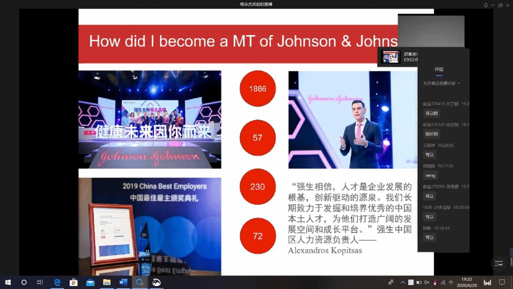 成功拿到6项世界500强offer、最后选择强生医疗管培生的杨志杰就自己的面试细节作了幽默的讲解。他指出,在拥有硬实力的前提下,坚定的眼神与大气的外表可以为面试增添更多加分项。他还讲述了自己在面试蓝月亮、蒙牛、雀巢惠氏TM等过程中的经历,强调面试最需要的是诚实态度和清晰的自我认知,在团队中的个人表现力尤为重要,要在面试前充分了解目标企业,在面试中与面试官积极互动。