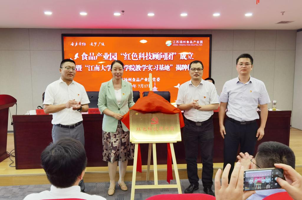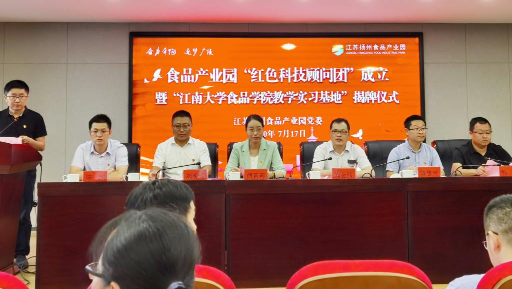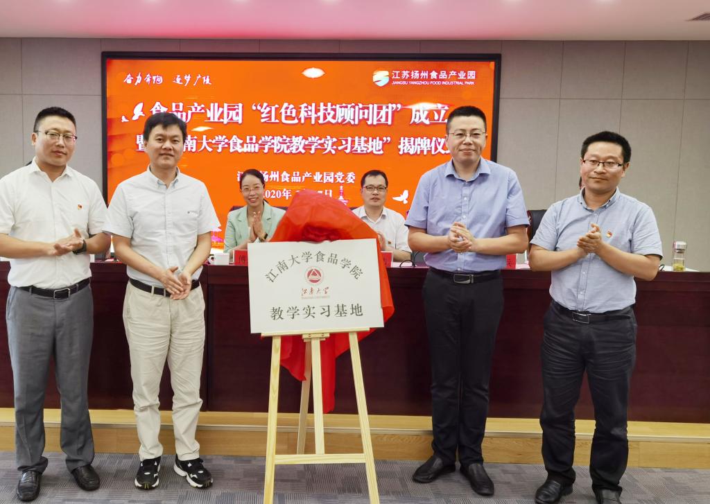 为进一步发挥高校科技服务功能,加快促进产学研相互转化,7月17日上午,在中国共产党成立99周年之际,365英国上市官网在线与扬州食品产业园举办“红色科技顾问团”成立暨“365英国上市官网在线教学实习基地”揭牌仪式。