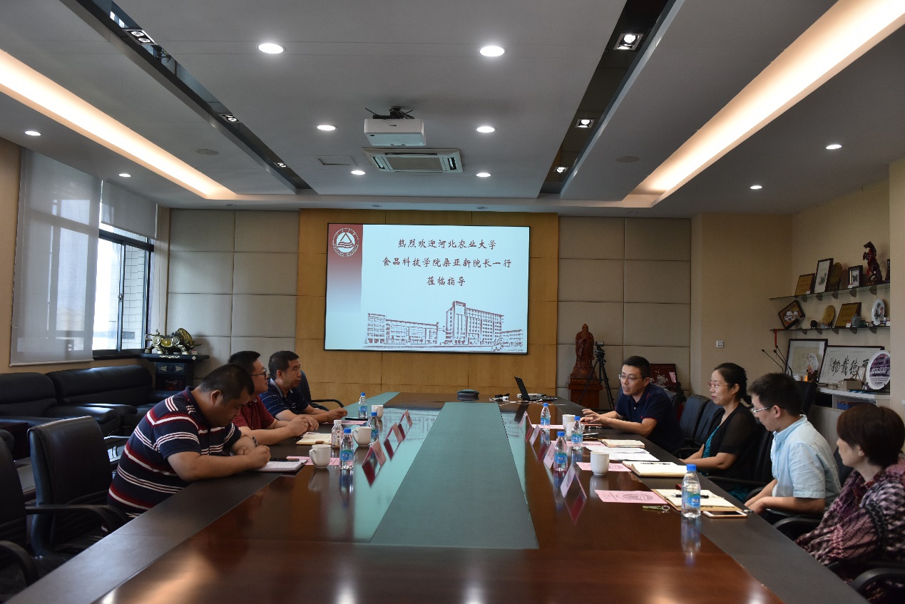 2020年9月8号,河北农业大学食品科技学院院长桑亚新、教学副院长张志胜、院党委副书记、副院长赵金辉一行来访我院,365英国上市官网在线党委书记傅莉莉、365英国上市官网在线副院长王立、365英国上市官网在线党委副书记、副院长魏珍吉、教学中心卢蓉蓉教授等人参加了会谈。