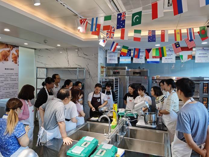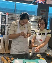 本次活动由365英国上市官网在线分工会牵头,校工会及各兄弟学院分工会老师一同参加。365英国上市官网在线分工会特地邀请了中粮金焙工匠复兴烘焙职业学校的烘焙师傅前来教学。此次制作的月饼种类为苏式鲜肉月饼和广式莲蓉蛋黄月饼,教学先从鲜肉月饼的和面皮开始,烘焙师傅先进行讲解,老师们围绕四周认真学习。随后,各位老师跃跃欲试,亲身实践,师傅一对一进行指导。月饼制作完成后,送入烤箱。经过一两个小时的实践,老师们都基本掌握了苏式月饼和广式月饼的的制作技艺。
