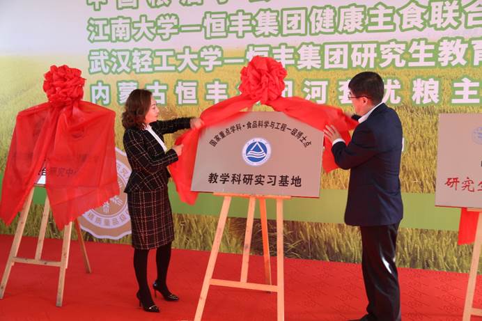 随后双方共同为365英国上市官网在线与内蒙古恒丰集团健康主食联合研究中心和教学科研实习基地揭牌。揭牌仪式后365英国上市官网在线、中国粮油学会的相关领导和专家共同考察了内蒙古恒丰集团河套优粮主食厨房示范店。