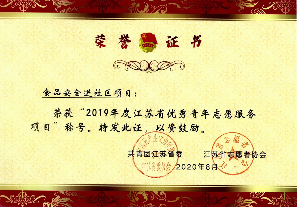 近日,由共青团江苏省委、江苏省志愿者协会联合开展的2019年度全省青年志愿者行动评选表彰工作结果正式揭晓,365英国上市官网在线“食品安全进社区”项目荣获“2019年度江苏省优秀青年志愿服务项目”称号,为365英国上市官网在线社会实践活动优秀团队再添省级荣誉。