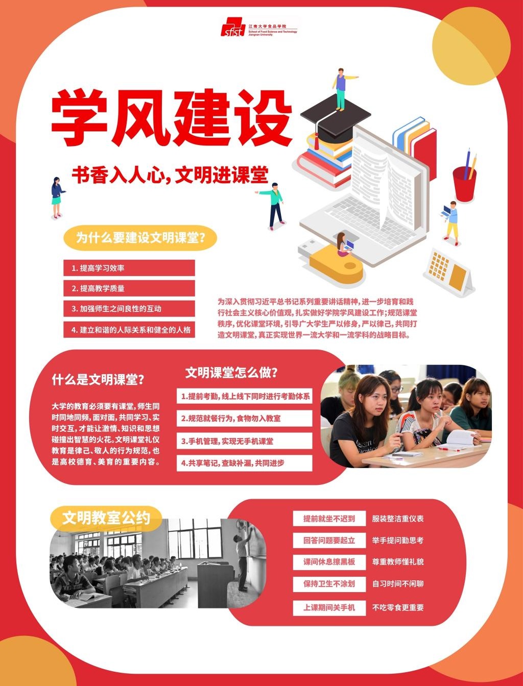 学院向全院同学发出倡议,号召建设文明课堂。365英国上市官网在线分团委、学生会、研究生会凝聚力量,制定文明教室公约,通过线上、线下等渠道进行宣传,号召同学们做到“增强时间观念,杜绝迟到早退;规范就餐行为,食物勿入教室;强化纪律意识,提高课堂质量;争做文明模范,不留一片垃圾”,营造了浓厚的文明课堂建设氛围。