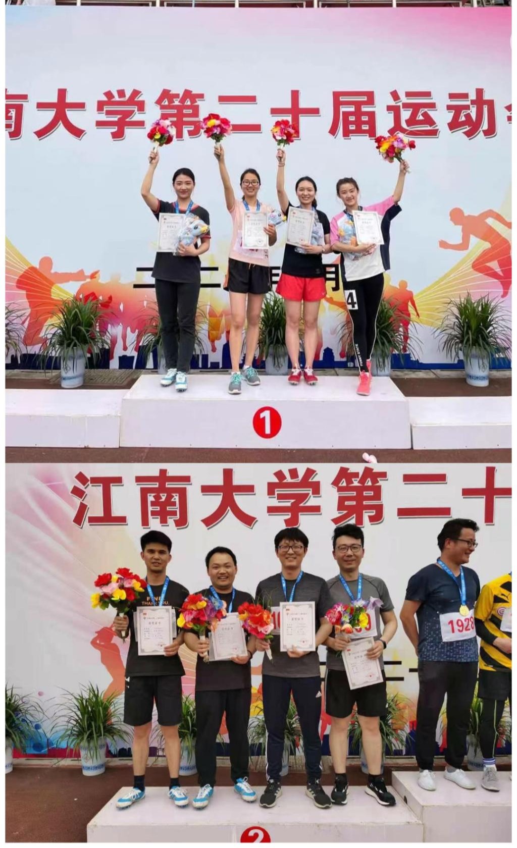 食品教工团结协作、奋勇争先,取得了优异的成绩。其中,在教工甲女子100米、教工女子4×100米、教工女子踩石子过河、教工蛟龙出海等项目中获得第一名,在教工甲男子400米、教工乙男子100米、教工男子4×100米、教工同心鼓获等项目中得第二名,在教工甲女子400米、 教工甲女子铅球等项目中获得第三名,另有15个比赛项目取得前八名。