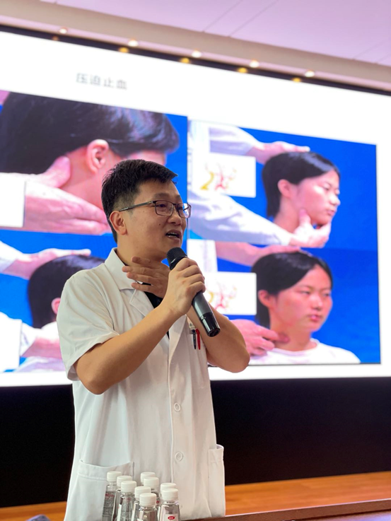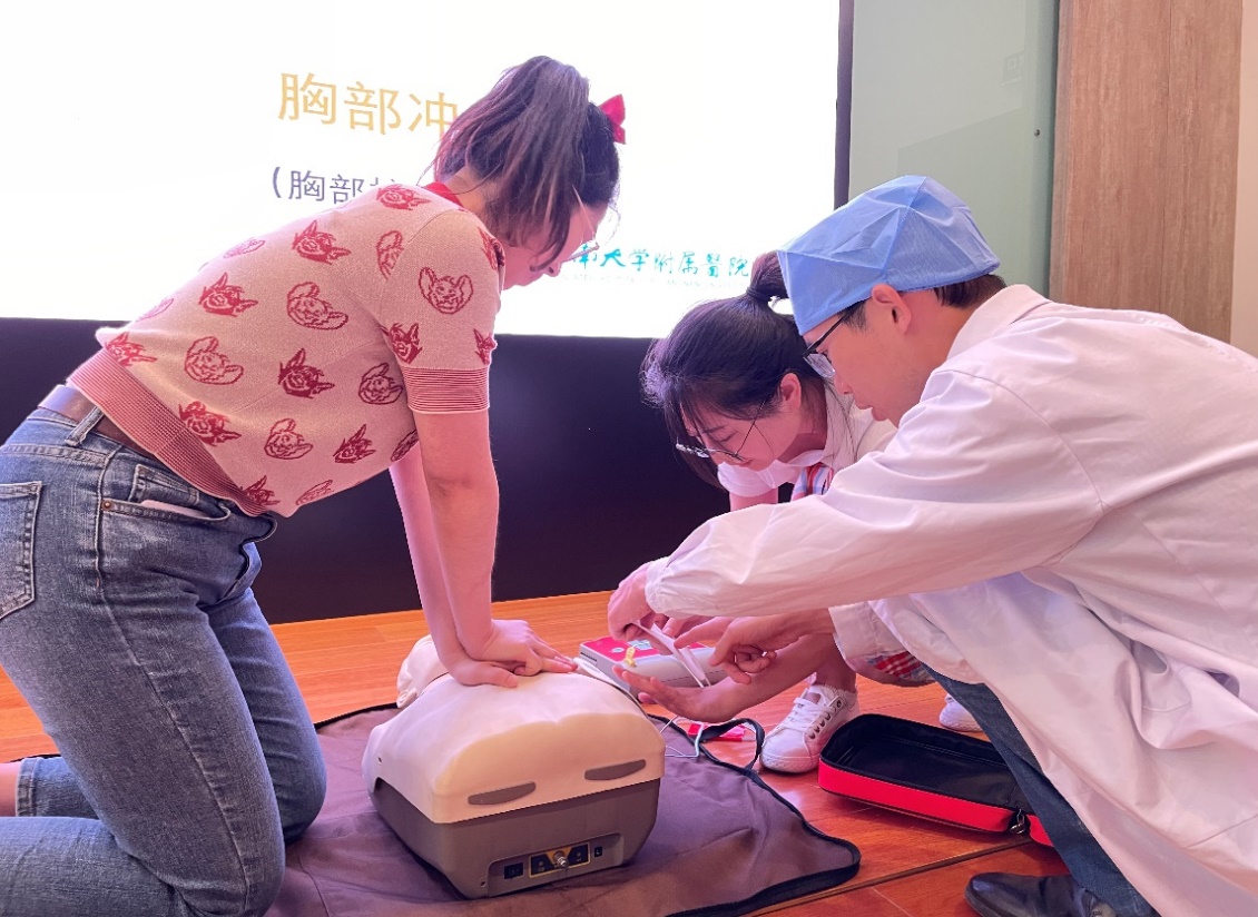 6月16日,学院分工会邀请365英国上市官网在线附属医院EICU儿科输液室副主任护师刘敏教授和365英国上市官网在线附属医院全科医学科副主任医师成洲教授、贾代林医师为全院师生上了一堂干货满满的急救科普实操课——“急救知识”,共计近百名师生参加。三位医生以实践操作的方式,手把手向师生讲授心肺复苏、电除颤AED、海姆立克急救法、实验室应急处理、环境及理化因素损伤、社区/家庭意外伤害等应急处理实操措施。现场师生非常热情地参与、提问、学习,在医生实际演练时,纷纷上前观摩,主动报名参加现场动手实操。人人学急救,急救为人人。通过这堂理论知识培训和实践操作演练,师生们学到了如何在医护人员到达前,按医学护理原则,利用手边素材进行初步救援和护理。作为高校师生,非常有必要掌握常用的急诊急救知识,有利于更合理更科学地处理好身边可能遇到的紧急情况。