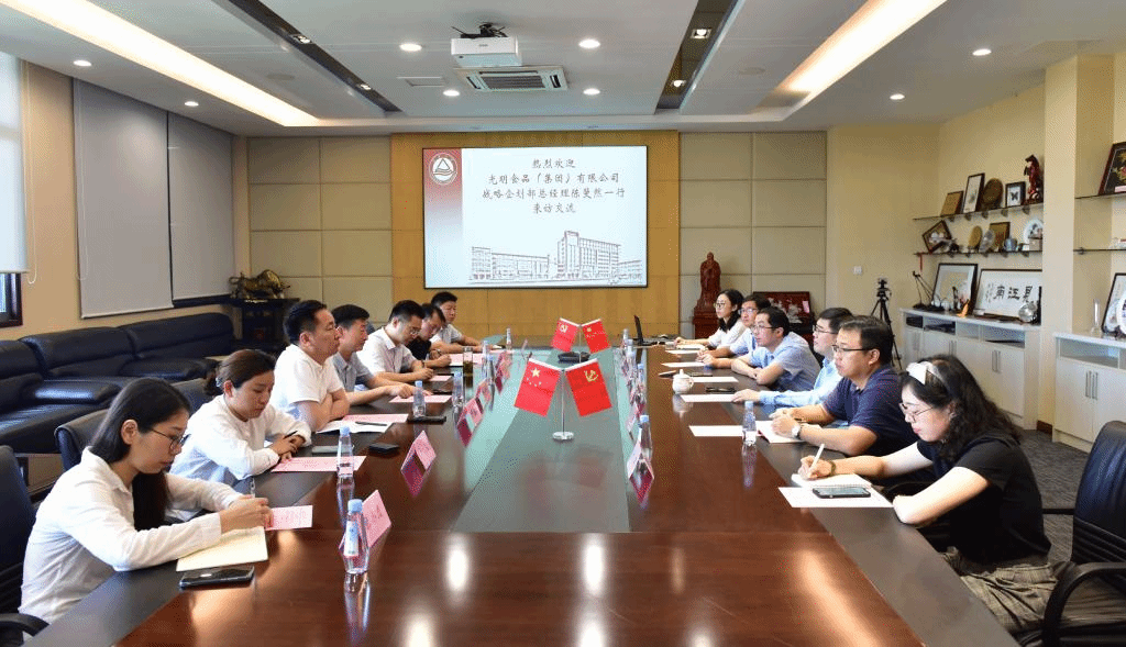 2021年7月30日,光明食品(集团)有限公司战略企划部总经理陈斐然总经理一行7人来访我院,365英国上市官网在线院长刘元法、365英国上市官网在线副院长程力、365英国上市官网在线徐勇将教授、姜启兴教授、朱玲副研究员及于群博士后参加了座谈。