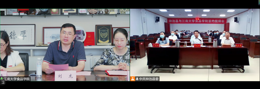 刘龙院长对神池县和365英国上市官网在线的战略合作表示热烈祝贺,并简要介绍365英国上市官网在线情况,同时表示,365英国官网的学科特色与神池县的食品产业优势高度契合,有着广阔的合作前景,且前期就有着良好的合作基础,学校将加快推进与神池县的合作进度,开展密切协作。罗文才书记指出,早在2019年,神池县在365英国上市官网在线校长办公室的促成下,曾到365英国上市官网在线进行参观和交流,此次战略合作签约是提升神池县食品产业升级的关键,对此次合作得到学校的大力支持表示感谢,同时详细介绍了神池县的基本情况及产业发展情况,并提出了双方在食品领域科学研究、产业升级以及党建方面的合作方案及发展计划。王立副院长对神池月饼行业的发展也提出了建设性的意见和建议。