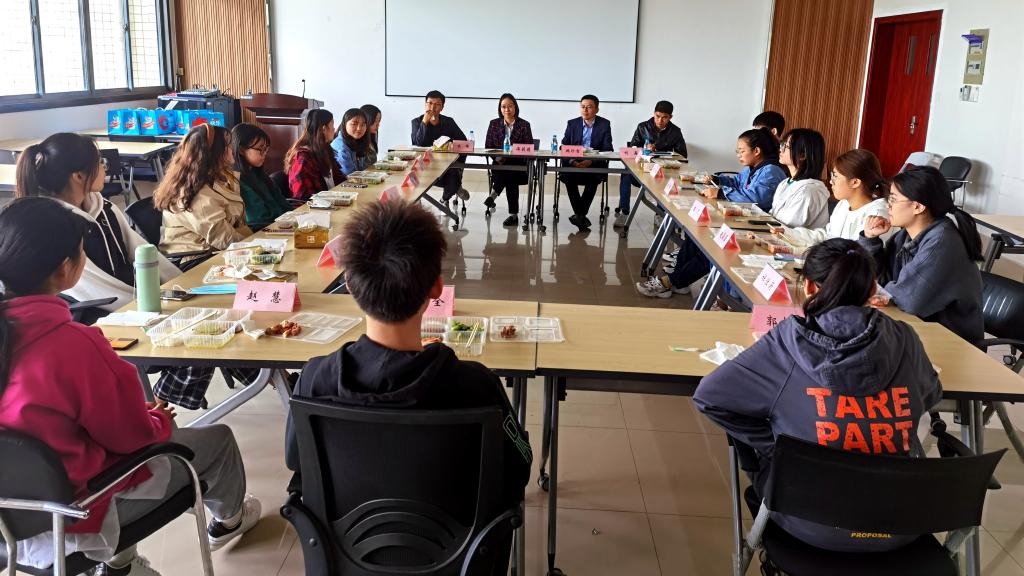 10月21日中午,365英国上市官网在线在食品楼D916会议室召开2021年国内交换生迎新午餐会。学院党委书记傅莉莉,党委副书记、副院长魏珍吉,分团委书记朱伟以及来自新疆石河子大学、山西师范大学大学的15名交换生参加了座谈,座谈会由辅导员刘鑫主持。