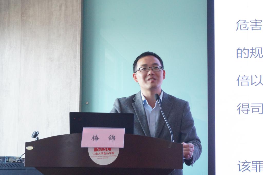 随后,梅锦老师围绕“食品安全犯罪的刑法规制与治理对策”进行了详细阐述,通俗易懂的语言和诙谐幽默的比喻,让枯燥的法律条款变得生动而鲜活。他首先介绍了食品犯罪在我国刑法中的演变,40年的从无到有,见证了我国经济的快速腾飞和社会主义法律体系顺应时代要求而不断完善。他还结合当下时政热点介绍了新时期我国食品安全犯罪的处罚现状,通过数据梳理和中外刑法对比让学生了解到世界各国对食品安全犯罪的打击正在持续升级。他提出,食品犯罪现有立法规定之不足及可能通过“积极主义刑法观”“谦抑性理论”“补充式刑事立法”等方法进一步完善相关法律措施及司法解释。梅锦老师强调,过硬的食品安全专业背景和法律知识的融合交叉,才能使执法实践更加公平公正,只有同时具有双重背景的学者才能在食品安全相关法律领域进行更加深入且持续的研究。他希望食品学子能够学法、懂法,共同探索和拓展交叉学科的边界问题和亟待解决的困难。
