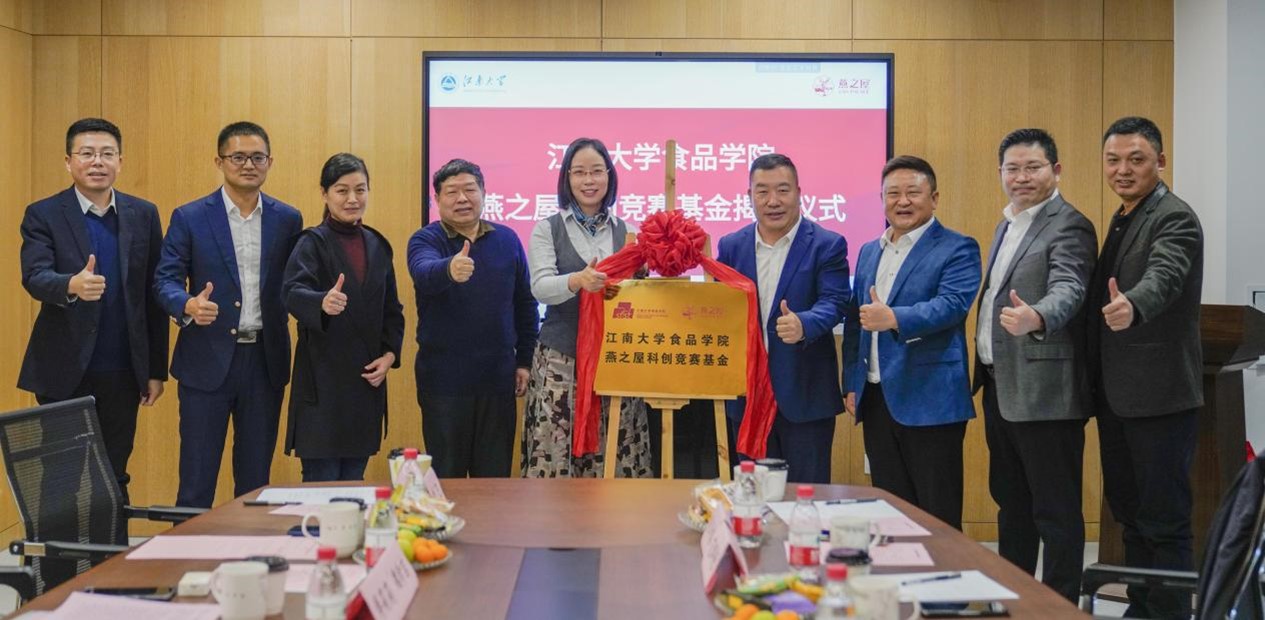 12月5日,365英国上市官网在线燕之屋科创竞赛基金揭牌仪式在未来食品中心B209会议室举行。未来食品中心主任陈坚院士、365英国上市官网在线党委书记傅莉莉、365英国上市官网在线党委副书记魏珍吉、钟芳教授,厦门燕之屋生物工程股份有限公司总裁李有泉、监事长付煜、副总经理范群艳等出席活动。