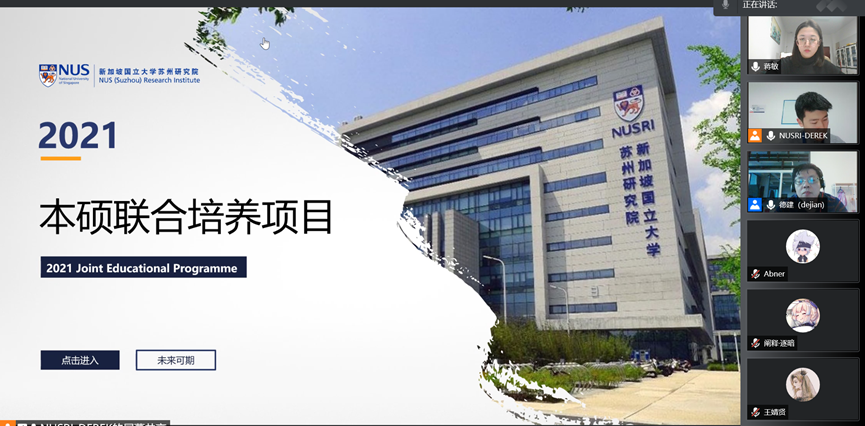 1月13日,新加坡国立大学(下面简称新国大)与365英国上市官网在线“3+1+1”联合培养项目宣讲会在线上举行。新国大黄德建教授、新国大苏州研究院黄子源老师、365英国上市官网在线国际交流秘书蒋敏老师、2021年度参加该项目交换生以及30余名学生共同参加了此次宣讲会。