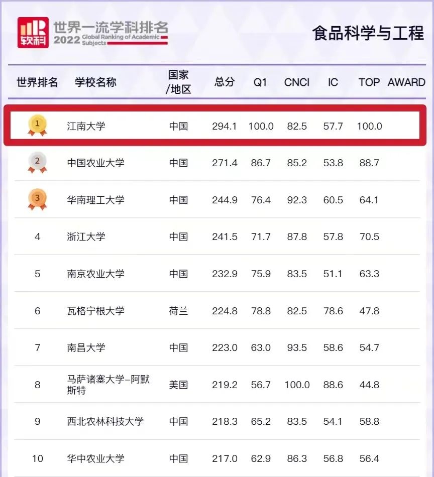 食品科学与工程学科排名情况