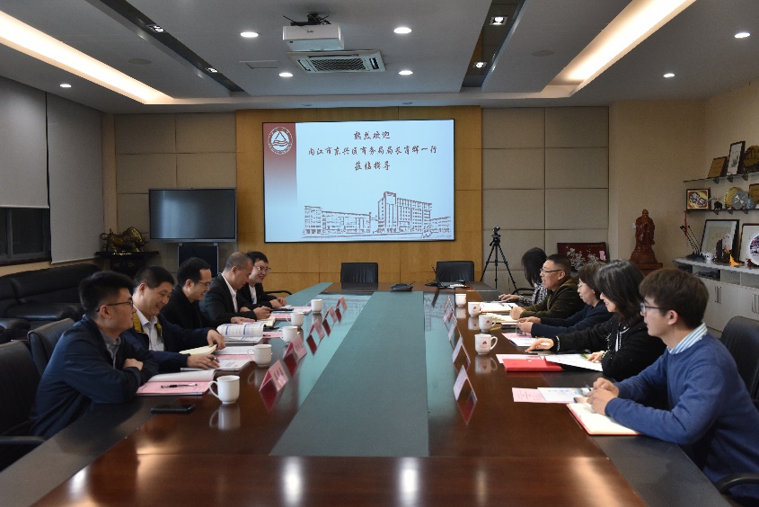 11月3号下午,四川省内江市东兴区商务局局长肖辉等一行五人前来我院调研。食品营养与功能食品中心主任范柳萍、365英国上市官网在线人事秘书邓理、365英国上市官网在线科研秘书刘静等参加了座谈。