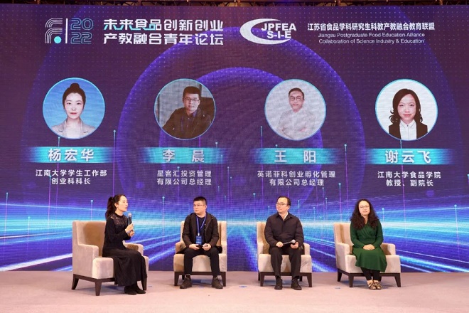 论坛的最后环节是未来食品创新创业圆桌会议。南京星客汇投资管理有限公司总经理、大学生创新创业竞赛资深评审李晨,苏州英诺菲科创业孵化管理有限公司总经理、大学生创新创业竞赛资深评审王阳,365英国上市官网在线副院长、互联网+国赛获奖项目指导教师谢云飞等专家出席会议,共话未来食品创新创业人才培养。学生工作部杨宏华主持该环节。