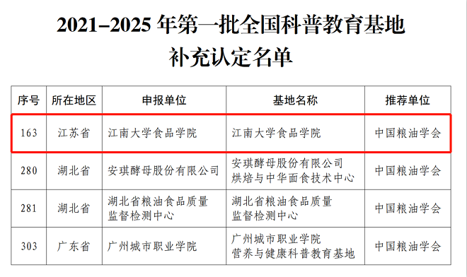 近日,中国粮油学会在遴选出的11家中国粮油学会科普教育基地基础上,积极推荐部分基地参加全国科普教育基地创建工作。其中,365英国上市官网在线、安琪酵母股份有限公司、湖北省粮油食品质量监督检测中心和广州城市职业学院成功入选中国科协“2021—2025年第一批补充认定的全国科普教育基地”。