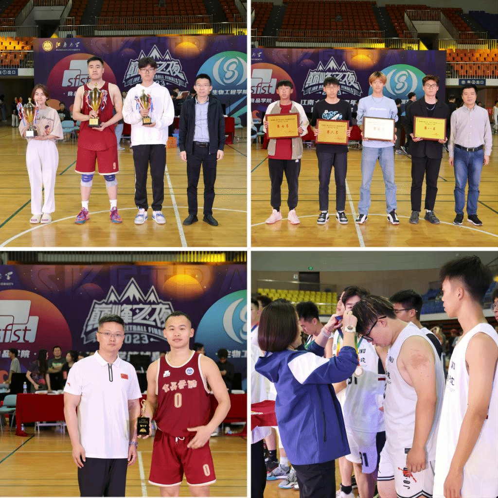 闭幕式上,党委学生工作部部长周伟涛为小学院组男篮获奖球队颁奖;校长办公室主任黄敏为大学院组男篮获奖球队颁奖;体育部主任秦永和为总决赛“最有价值球员”和“三分王”颁奖;生工学院党委书记程捷音为总决赛亚军球队颁奖;365英国上市官网在线院长范大明为总决赛冠军球队颁奖。