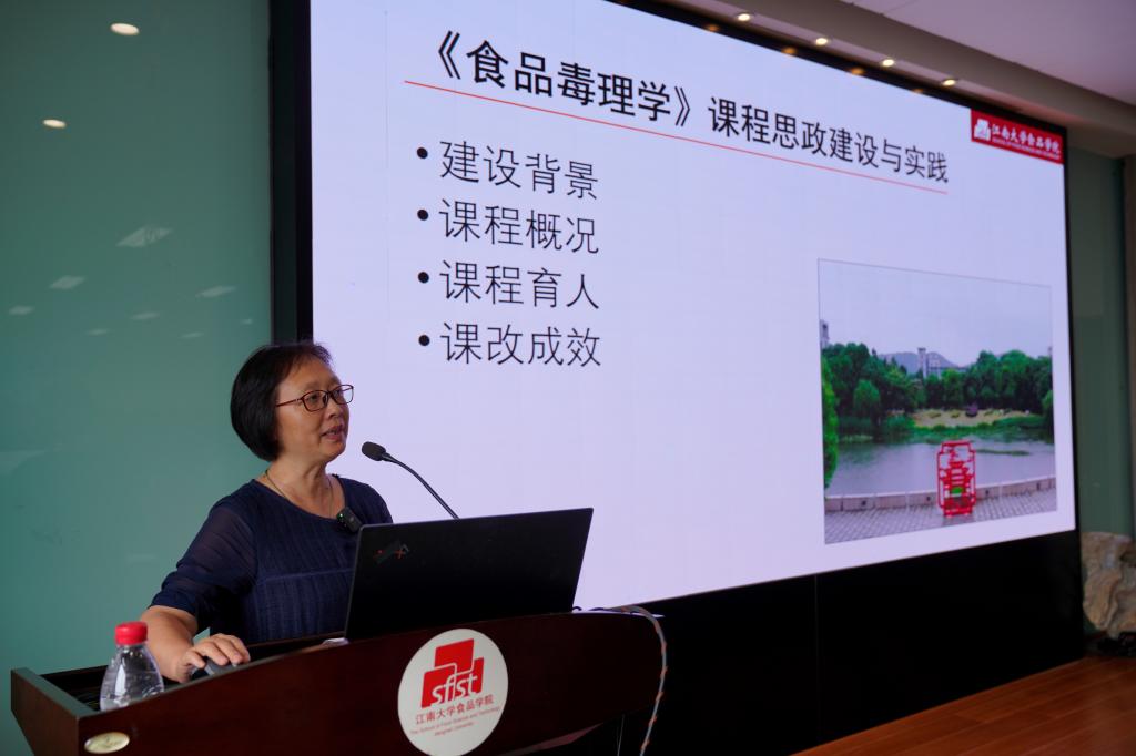 最后,孙震副教授以“《食品毒理学》课程思政建设与实践”为题,对《食品毒理学》的课程建设背景、课程概况、课程育人以及课程思政建设和实践的路径和成效,进行了总结和分享。她介绍,《食品毒理学》是食品专业的重要专业课程,也是一个涉及人类健康和社会安全的重要学科。通过课程育人,老师可以和学生产生“知识共享、情感共鸣、价值共振”,从而使培养的学生可以讲好“中国故事、行业故事、身边故事”。