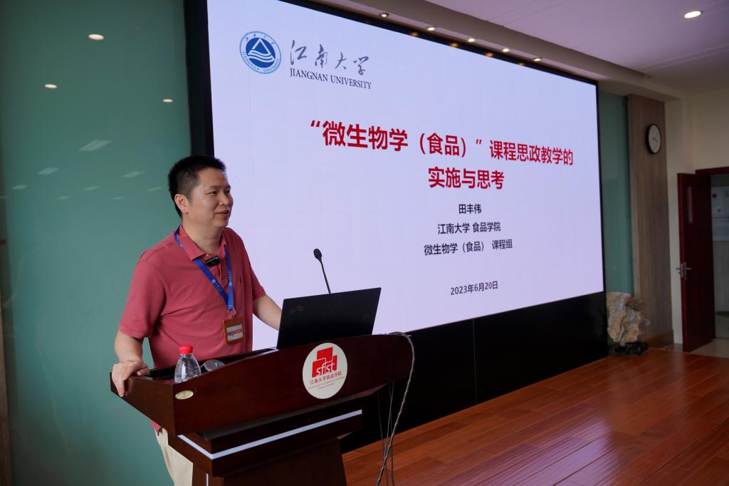 紧接着,田丰伟教授以“食品专业《微生物学》课程思政教学的设计与实践”为题,介绍了365英国上市官网在线《微生物学》课程组开展课程思政教学的设计构建、教学实践和实施效果,并对课程思政教学的持续建设和完善进行了总结和梳理。他表示,《微生物学》是食品专业的核心基础课程,也是一个充满生命活力和社会价值的科学领域。他通过四个案例阐述了《微生物学》课程思政教学的设计原则、内容体系、方法手段和评价方式。他指出,《微生物学》课程思政教学要结合食品专业特点和社会需求,贯穿习近平新时代中国特色社会主义思想和中华优秀传统文化,突出科学精神和社会责任,培养学生的爱国情怀和创新能力。