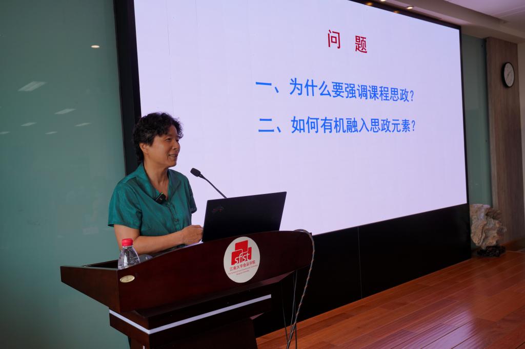 接着,王海鸥副教授以“关于课程思政的一点想法”为主题,从理论和实践两个层面进行了深入浅出的分享。她指出,课程思政是习近平总书记提出的一项重大战略部署,是新时代高校育人工作的重要内容和有效途径。她结合自己多年的教学实践,从“为什么要强调课程思政”、“如何有机融入思政元素”、“课程思政应达到的要求”三个方面,分别阐述了课程思政的必要性、可行性和有效性,给出了一些具体的案例和建议。针对课程思政常见问题,她提出要做到挖掘内涵、切入自然、融会贯通、身正为范。同时王老师还强调了,课程思政要达到四个方面的要求,即不断提高教育教学思想境界、不断挖掘和积累思政元素、严格恪守职业道德、视学生为自己的独一爱子。