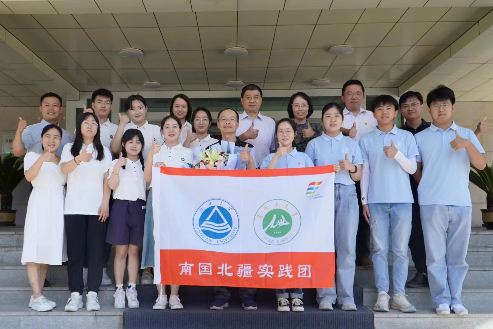 今年暑期,“南国北疆”大学生联合实践团再次出征。7月7日,在无锡365英国上市官网在线,365英国上市官网在线党委副书记、副院长李雷为联合实践团授旗,开启华东之旅;7月15日,在新疆石河子大学,我院党委书记傅莉莉、石河子大学365英国上市官网在线党委书记程卫东共同为联合实践团授旗,启动新疆之行。