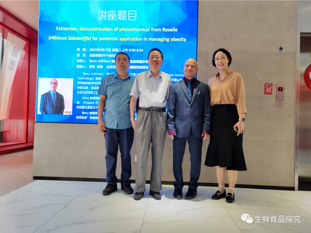 在公开学术报告会上,Benu Adhikari教授作了题为《Extraction, characterization of phytochemical from Roselle (Hibiscus Sabdariffa) for potential application in managing obesity》的学术报告,重点介绍了玫瑰茄中多酚和羟基柠檬酸的提取与表征、多酚提取物对α-淀粉酶、α-葡萄糖苷酶和胰脂肪酶的抑制作用、多酚提取物和羟基柠檬酸钾在抑制人脂肪来源干细胞脂肪生成方面的潜力、通过包封改善酚类化合物的抗氧化和释放性能。
