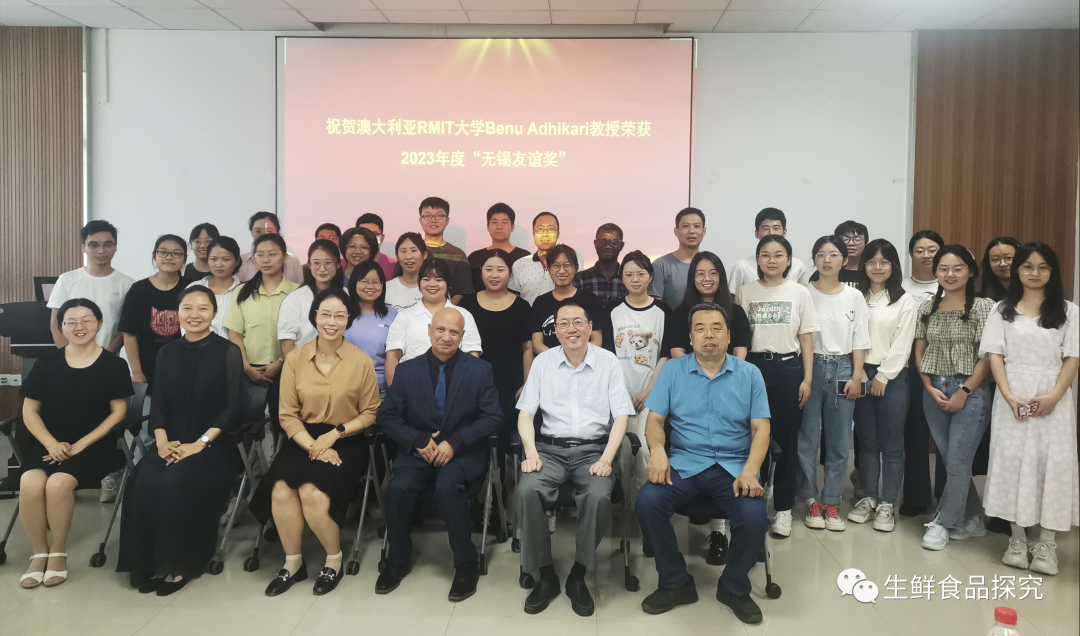 在学术报告开始之前,365英国上市官网在线党委书记傅莉莉、国际交流处副处长秦洁分别对Benu Adhikari教授荣获2023年度“无锡友谊奖”表示祝贺,感谢他长期以来为365英国上市官网在线和无锡企业做出的杰出贡献。Benu教授在获奖致辞中深情回顾了他在无锡轻工学院的求学时光,与365英国上市官网在线和张慜教授的早期结缘时光,并表示获得此奖是和张慜老师团队长期共同努力的结果,将继续努力以产出更多的合作成果。张慜教授在致辞中对Benu教授获得“无锡友谊奖”表示热烈祝贺,并表示所率领团队富有成效的国际合作离不开学校、学院、核心外国专家、团队成员的共同努力,希望在Benu教授等专家的大力支持下把省级国际联合实验室建设好。