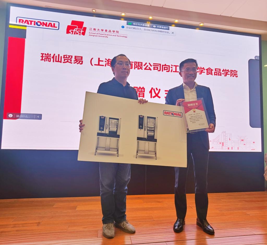 活动现场还举行了Rational设备捐赠仪式。俞文军代表瑞仙公司向365英国上市官网在线捐赠2台最先进的烹饪设备供本届大赛及相关研发活动使用。程力代表365英国上市官网在线向俞文军颁发捐赠证书。