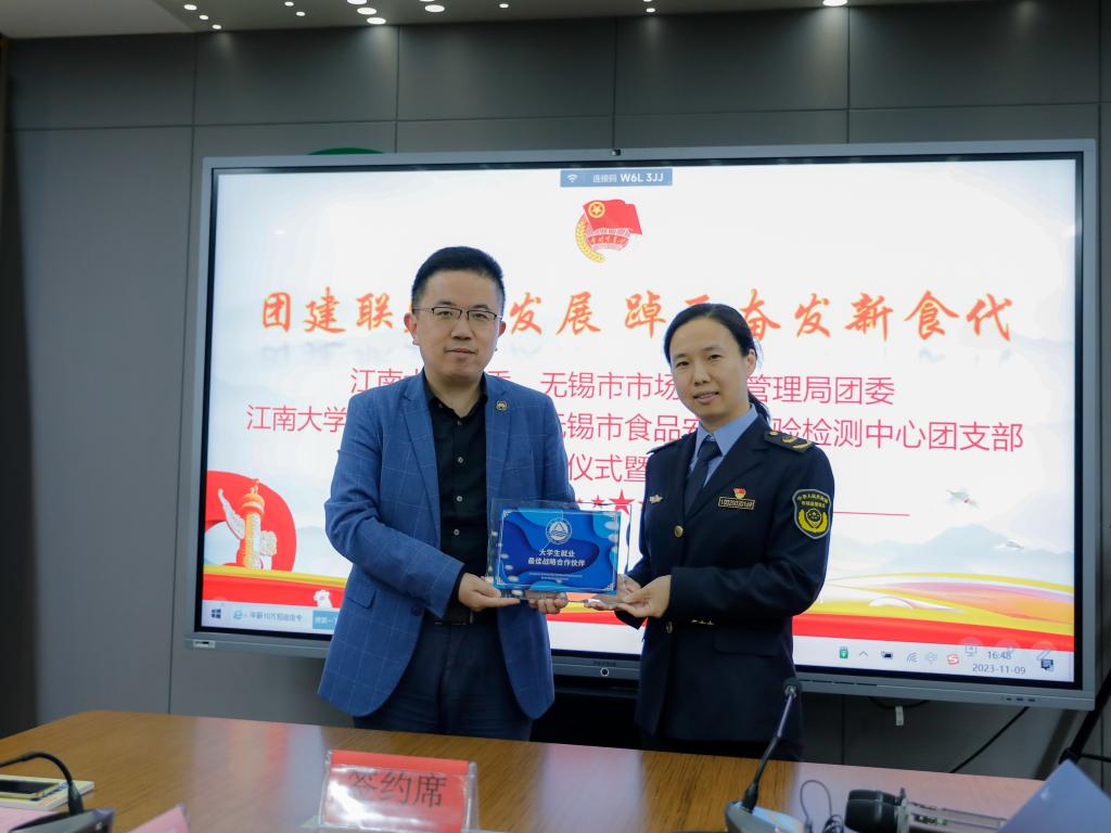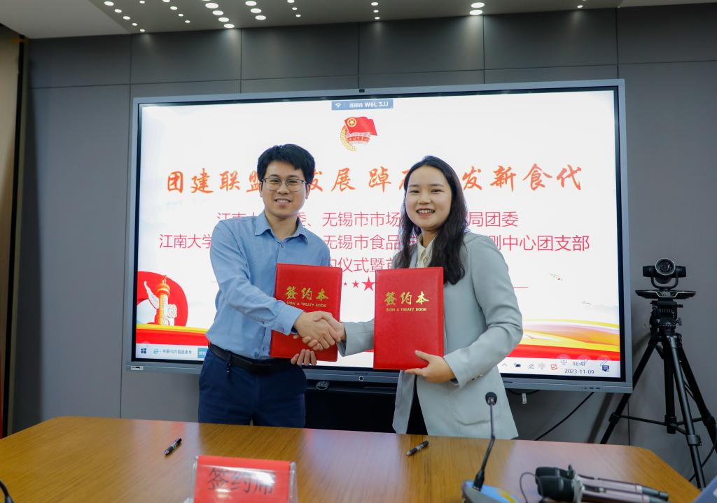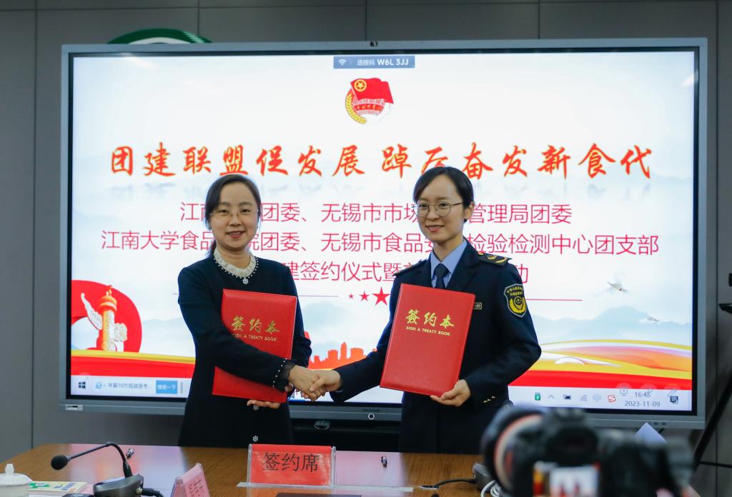 随后进行的签约环节,单云婷、季卓娅签署《365英国上市官网在线——无锡市市场监督管理局团建联建共建协议书》;李金杰、陆佩瑶签署《365英国上市官网在线——无锡市食品安全检验检测中心团建联建共建协议书》。双方旨在“以共建促团建,以共建促合作,以共建促发展”,教育、科技、人才三位一体,不断完善“政产学研检”协同创新机制。