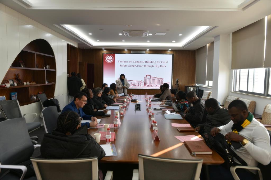 11月15日,由中华人民共和国商务部主办、浙江师范大学承办的大数据监管食品安全监管能力建设研修班学员来院参观并听取报告会,365英国上市官网在线副院长谢云飞作报告。本次研修班旨在加强“一带一路”国家之间的交流与合作,提高各国食品安全监管能力和水平。